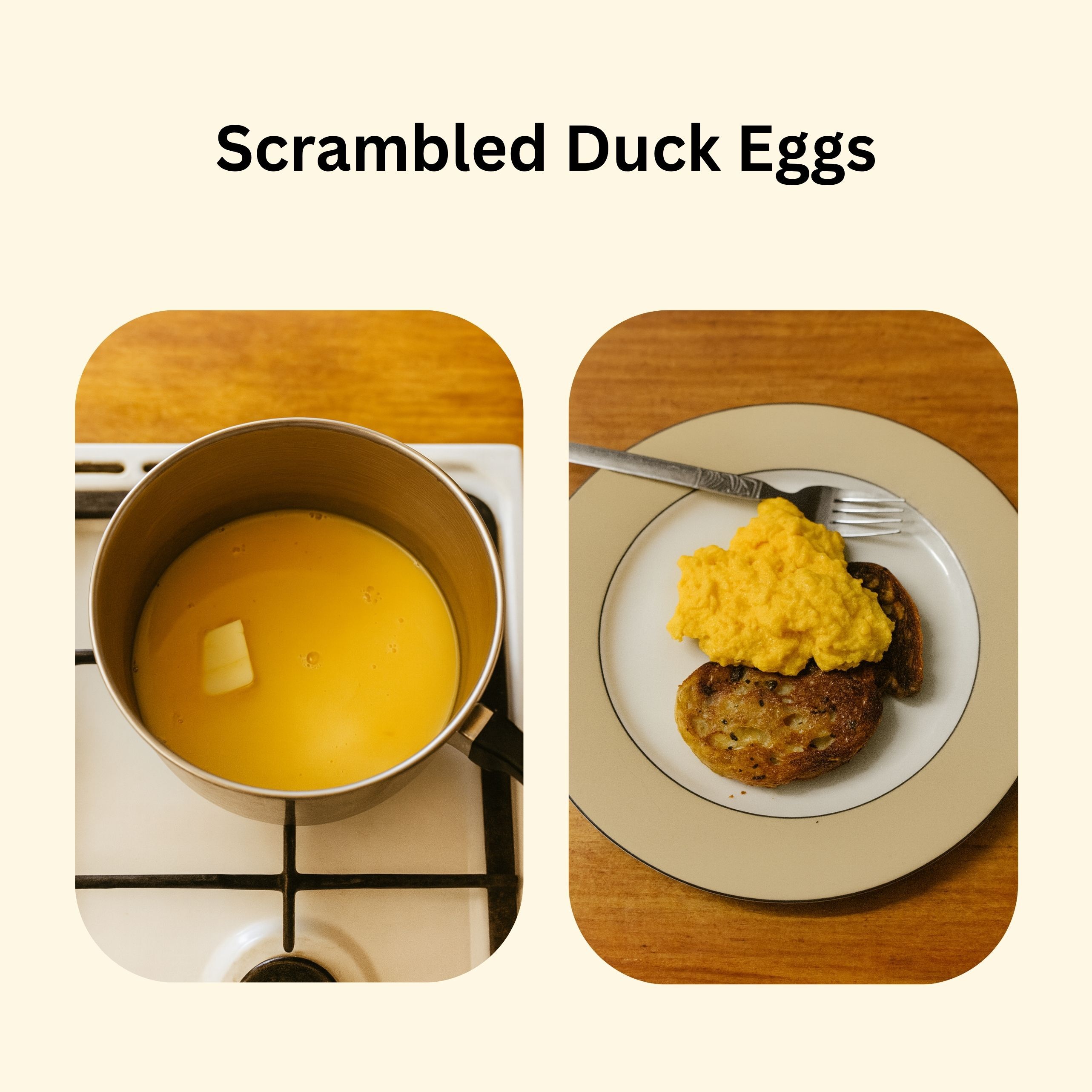 - Once the pan is hot, add your duck eggs.